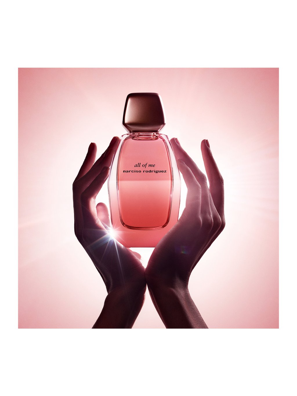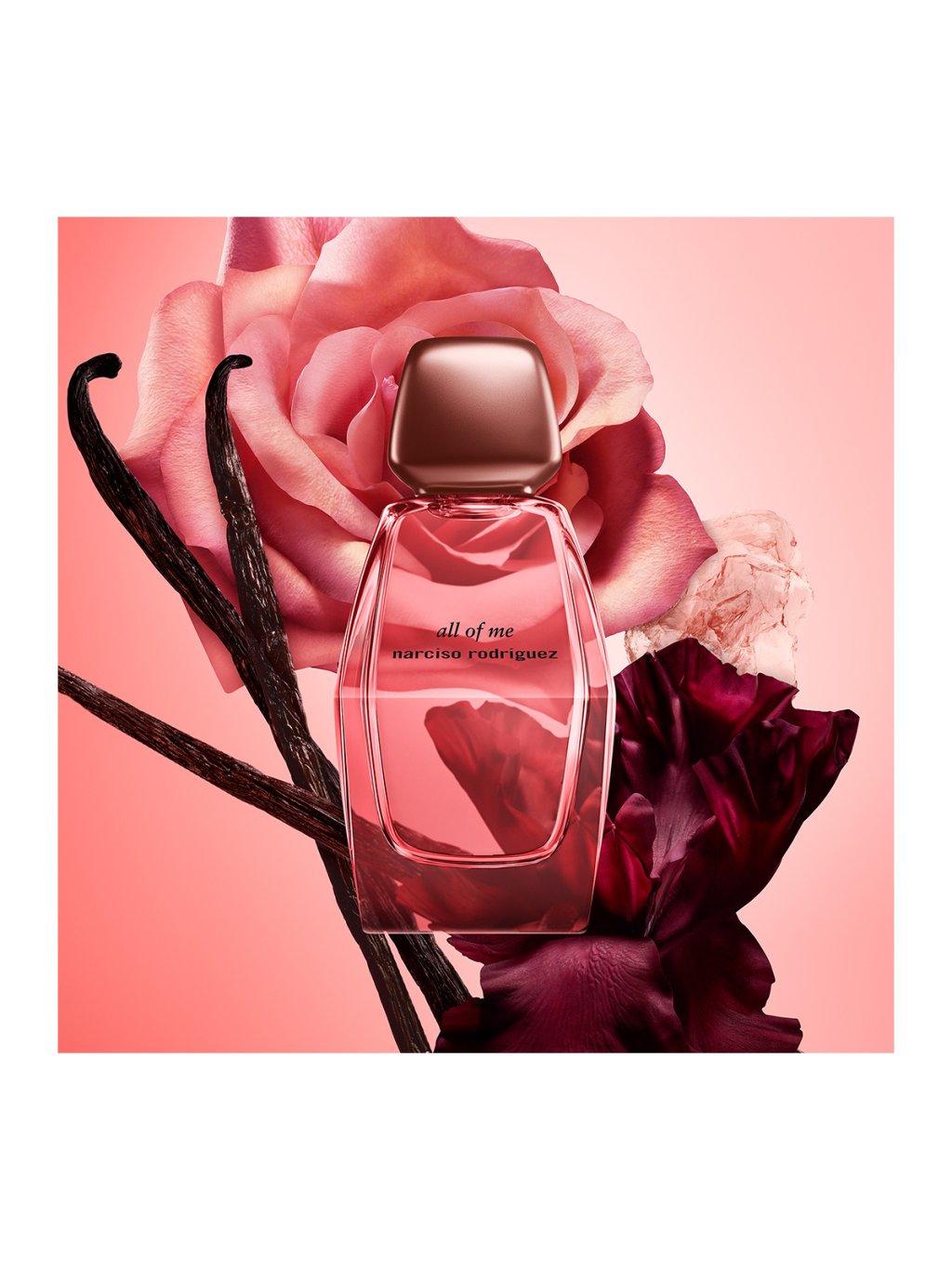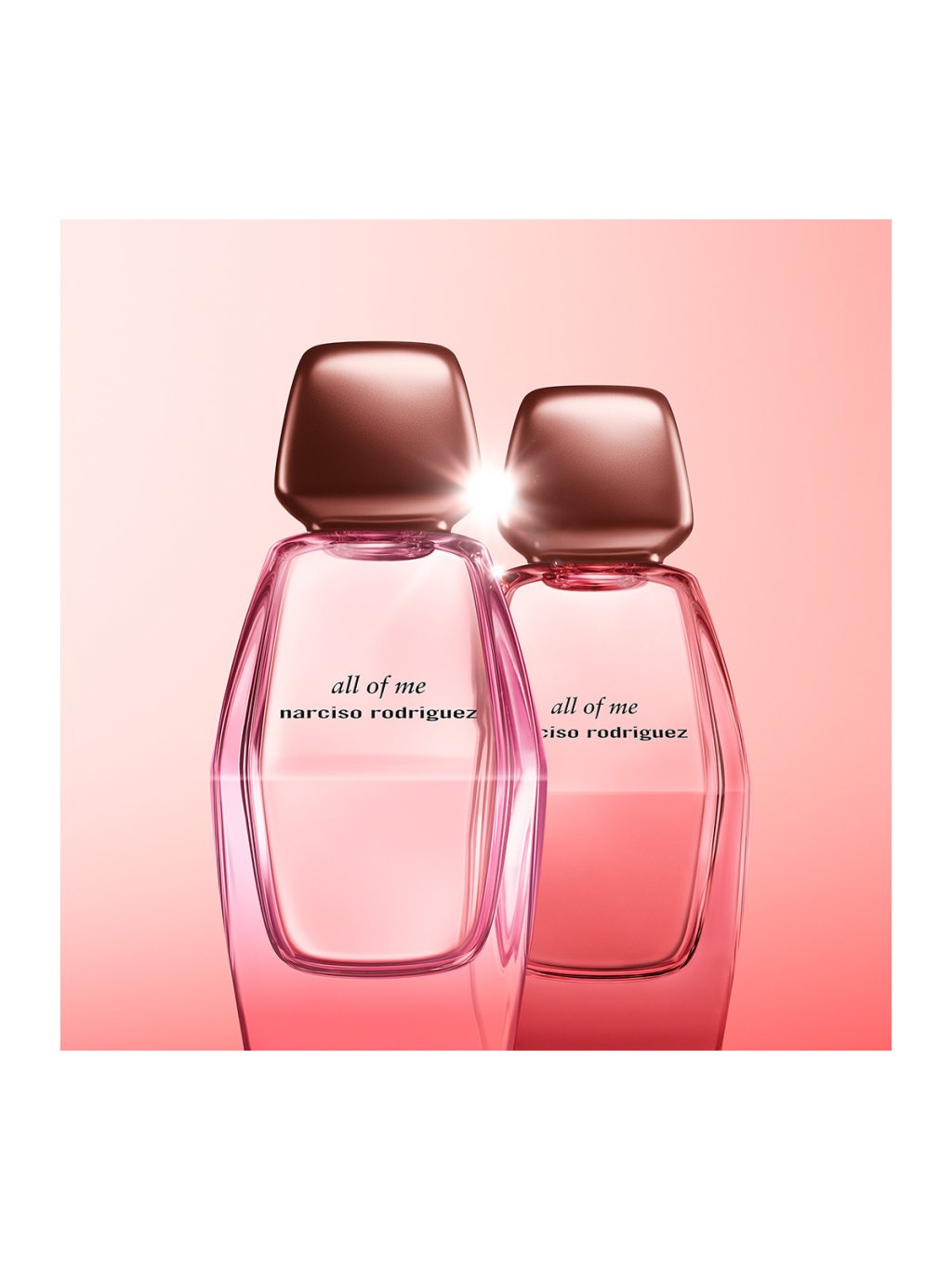 Bílá, dřevitá a svěží vůně All Of Me Intense je podmanivá vůně pro ženy z dílny Narciso Rodriguez. Tento parfém, který byl uveden na trh v roce 2024, začíná tóny jasmínu sambac a černého kosatce. Střední tóny tvoří růžová pelargónie, tuberóza a růže, zatímco základ tvoří australské santalové dřevo, vanilka a pižmo. Odvážná květinová vůně pro ženu, která přijímá všechny stránky své osobnosti bez výčitek. Láska k sobě samé je její silou v každém kroku.