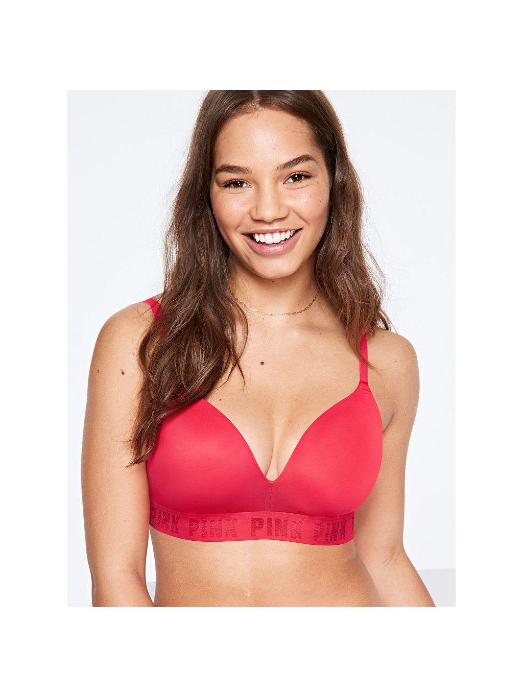 Victoria's Secret PINK Push-up podprsenka bez kostic Wireless Lightly Lined červená